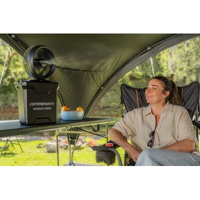 Νικήστε την αδυσώπητη καλοκαιρινή ζέστη με τον ανεμιστήρα υδρονέφωσης OZTRAIL Aerobreeze ProMist 25cm, σχεδιασμένος για να προσφέρει την απόλυτη εμπειρία δροσιάς όπου κι αν στήσετε την σκηνή σας. Αυτός ο ισχυρός, επαναφορτιζόμενος ανεμιστήρας διαθέτει λειτουργίες απλού ανεμιστήρα καθώς και ανεμιστήρα με υδρονέφωση, επιτρέποντάς σας να προσαρμόζετε εύκολα το επίπεδο άνεσής σας ώστε να ταιριάζει σε οποιοδήποτε περιβάλλον. Διαθέτει πολύ μεγάλη χωρητικότητα νερού και μπαταρία εξαιρετικά μεγάλης διάρκειας, ενώ αποτελεί την τέλεια φορητή λύση για το κάμπινγκ, τις υπαίθριες εκδηλώσεις ή απλώς για χαλάρωση στη βεράντα.