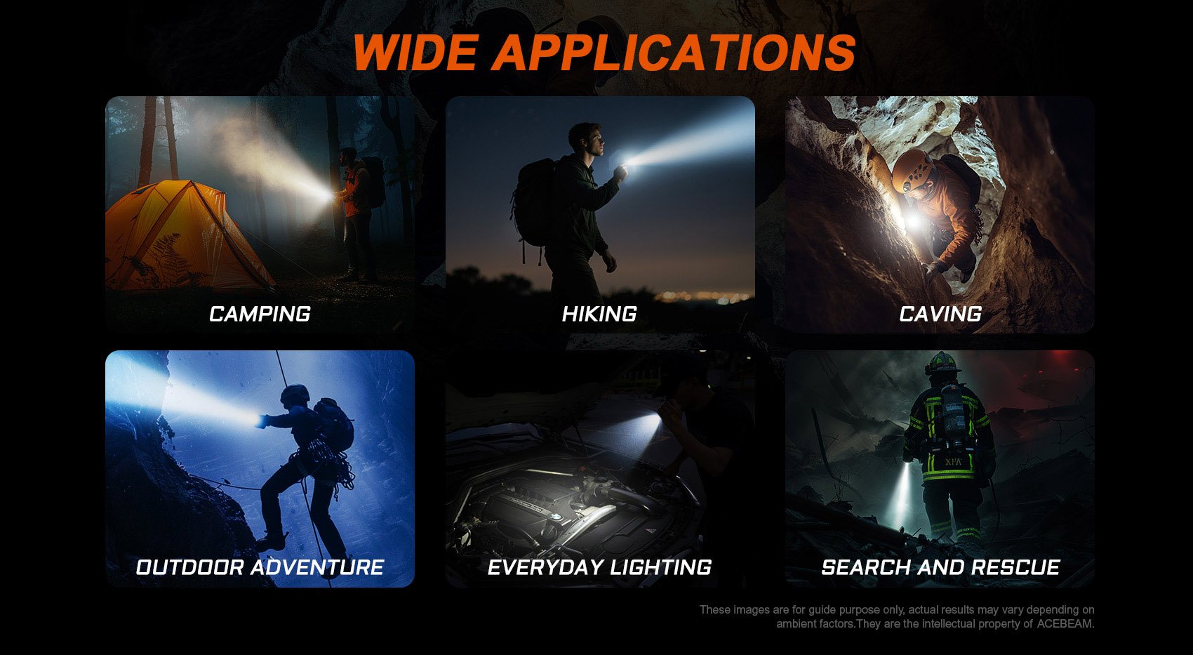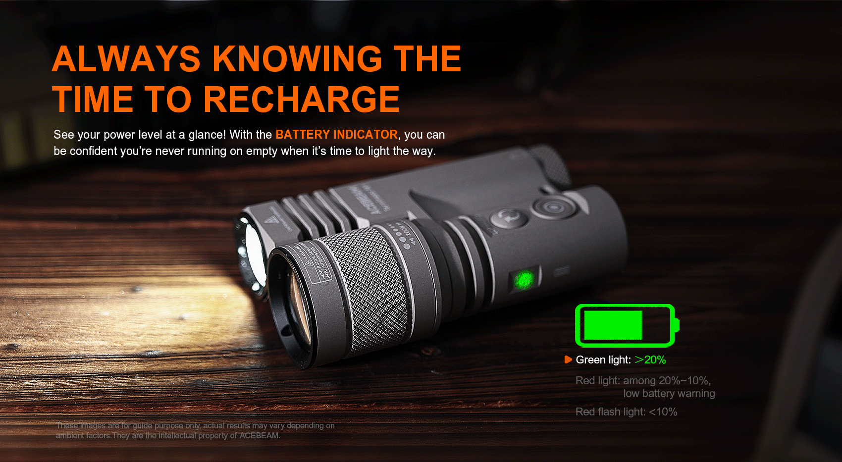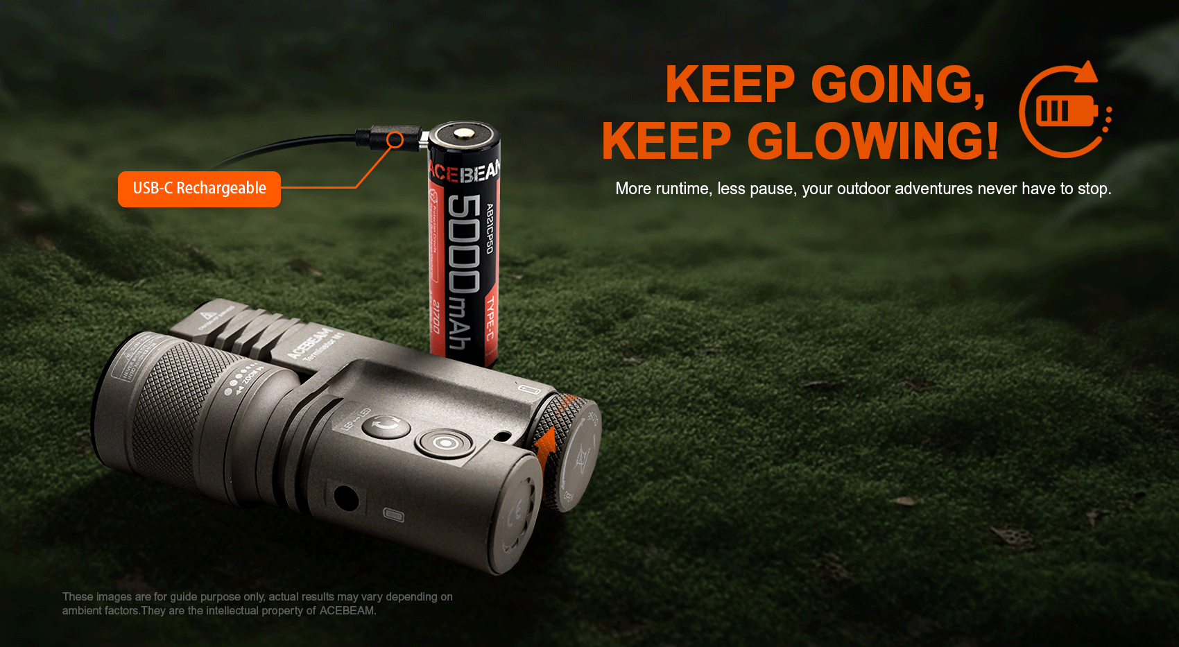 • Διαθέτει επαναφορτιζόμενη μπαταρία ACEBEAM USB-C 21700 Li-ion (Περιλαμβάνεται)