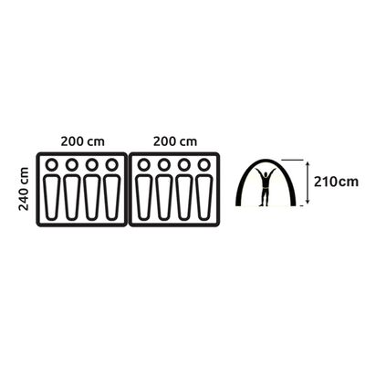 Ευρύχωρη Χωρητικότητα 8 Ατόμων: Σχεδιασμένη για να φιλοξενεί έως και οκτώ άτομα, αυτή η σκηνή διαθέτει έναν μεγάλο ενιαίο χώρο (4m x 2.4m) που χωράει άνετα δύο διπλά φουσκωτά στρώματα (Queen size).