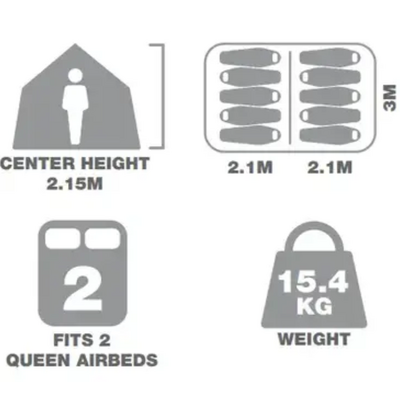 Η σκηνή Oztrail Hightower Mansion 10 ατόμων είναι ο απόλυτος σύντροφός για τις υπαίθριες περιπέτειες! Κατασκευασμένη με γνώμονα τις ανάγκες των μεγάλων οικογενειών, αυτή η ευρύχωρη σκηνή προσφέρει έναν άνετο χώρο για έως και οκτώ κατασκηνωτές, διασφαλίζοντας ότι όλοι έχουν άφθονο χώρο για ύπνο και χαλάρωση. Μπείτε στη σκηνή μέσα από τη μεγάλη μπροστινή πόρτα και βυθιστείτε σε έναν κόσμο άνεσης. Τα στρατηγικά τοποθετημένα παράθυρα δημιουργούν μια φωτεινή και ευάερη ατμόσφαιρα, ενώ η ροή του αέρα μέσα στη σκηνή προσφέρει δροσιά τις πιο ζεστές μέρες.